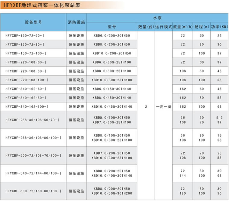 隨著現(xiàn)代化城市的迅速發(fā)展,高層建筑的日新月異,高位水塔已經(jīng)不能滿足高層建筑的供水要求,在這種條件下,自動(dòng)化供水設(shè)備發(fā)展迅速,主要有變頻恒壓供水設(shè)備、管網(wǎng)疊壓無負(fù)壓供水設(shè)備和箱泵一體化泵站三種。 富亞公司生產(chǎn)的地埋式箱泵一體化消防泵站,是根據(jù)公安部標(biāo)準(zhǔn)GB 27898.2-2011《消防自動(dòng)恒壓給水設(shè)備》和國標(biāo)02S101圖集設(shè)計(jì)的新型消防專用固定滅火裝置。設(shè)備主要由不銹鋼消防水箱/熱鍍鋅鋼板水箱/SMC水箱,消防增壓泵、穩(wěn)壓泵,氣壓罐,控制柜,傳感器,儀表,管道附件等組成;是取代混凝土消防水池的理想產(chǎn)品,可節(jié)約投資30%以上。廣泛適用于多層建筑、高層建筑和廠礦企業(yè)等有消防增壓設(shè)計(jì)要求的消火栓系統(tǒng)及噴淋系統(tǒng)等各類消防給水系統(tǒng)。 它是綜合了變頻恒壓供水設(shè)備和管網(wǎng)疊壓無負(fù)壓供水設(shè)備的的優(yōu)點(diǎn),是根據(jù)自來水管網(wǎng)壓力反饋,將設(shè)備的進(jìn)水水源智能變換,自來水服務(wù)壓力很高或者用水低峰時(shí),它就會自動(dòng)將設(shè)備進(jìn)水源的電動(dòng)閥打開,水箱供水電動(dòng)閥關(guān)閉;當(dāng)用水高峰時(shí),它就會自動(dòng)關(guān)閉自來水進(jìn)水電動(dòng)閥,并打開水箱供水電動(dòng)閥,此時(shí)它又變?yōu)榱藗鹘y(tǒng)的變頻恒壓供水設(shè)備。絕不會減少自來水管網(wǎng)的服務(wù)壓力。 地埋式箱泵一體化泵站的優(yōu)點(diǎn): 1、節(jié)省空間:水泵和泵室放置在水箱中且固定在一體化泵站專用的模塊上。通常情況下只占用0.5~1.5m的水箱容積。 2、移動(dòng)、拆卸方便,使用壽命長:由于采用裝配式不銹鋼水箱,改變了以往的焊接方法,采用螺絲裝配,適用性強(qiáng),安裝方便,無需專用設(shè)備。 3、排空方便:由于采用新型潛水式消防泵,直接潛放在水中,無需專門排空氣,只要水箱液位處于規(guī)定液位之內(nèi)就可以直接進(jìn)入消防供水狀態(tài)。 4、免凍裂:消防泵潛放在水箱深處,在冬季不會由于結(jié)凍被燒壞。 5、低噪音:配備的水浸式電機(jī)和水泵,大大減低了運(yùn)行的噪音。 6、可靠性:水浸式電機(jī)不會由于雨淋或環(huán)境溫度燒壞電機(jī)、腐蝕電機(jī)軸承。 7、升級簡便:留有接口可支持遠(yuǎn)程傳輸、自動(dòng)清洗、殺菌、消毒。 |