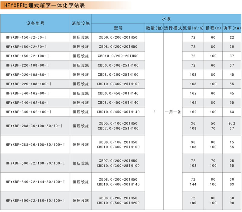 富亞公司生產的地埋式箱泵一體化消防泵站,是根據公安部標準GB 27898.2-2011《消防自動恒 壓給水設備》和國標02S101圖集設計的新型消防專用固定滅火裝置。設備主要由不銹鋼消防水箱/熱鍍鋅鋼板水箱/SMC水 箱,消防增壓泵、穩壓泵,氣壓罐,控制柜,傳感器,儀表,管道附件等組成;是取代混凝土消防水池的理想產品,可 節約投資30%以上。廣泛適用于多層建筑、高層建筑和廠礦企業等有消防增壓設計要求的消火栓系統及噴淋系統等各類消 防給水系統。